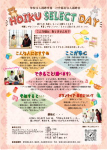 園見学会 ご参加予定の皆さま 「ひまわりほいくえん(中原区)」に2026年度に入園を希望される皆様を対象に、下記の日程において園見学会を開催いたします。日時:...